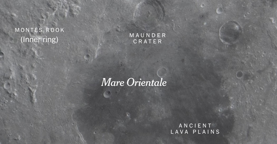 Одним із найзначніших відкриттів став повний огляд Моря Східного(Mare Orientale). Цей масивний кільцевий ударний басейн простягається приблизно на 600 миль і охоплює як видиму, так і зворотну сторону Місяця. Хоча попередні місії «Аполлон» також відвідували Місяць, їхні висадки були стратегічно сплановані так, щоб кратер був у тіні. Проте астронавти «Артеміди-II» змогли розглянути весь басейн цілком, відзначивши помітну зміну кольору — відтінки коричневого, зосереджені ближче до центру його концентричних кілець.
